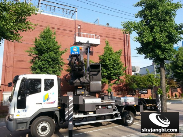 태우고 고소 작업을 할수 있는 고소작업차 입니다.