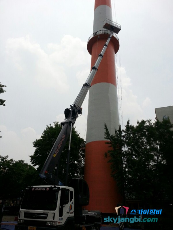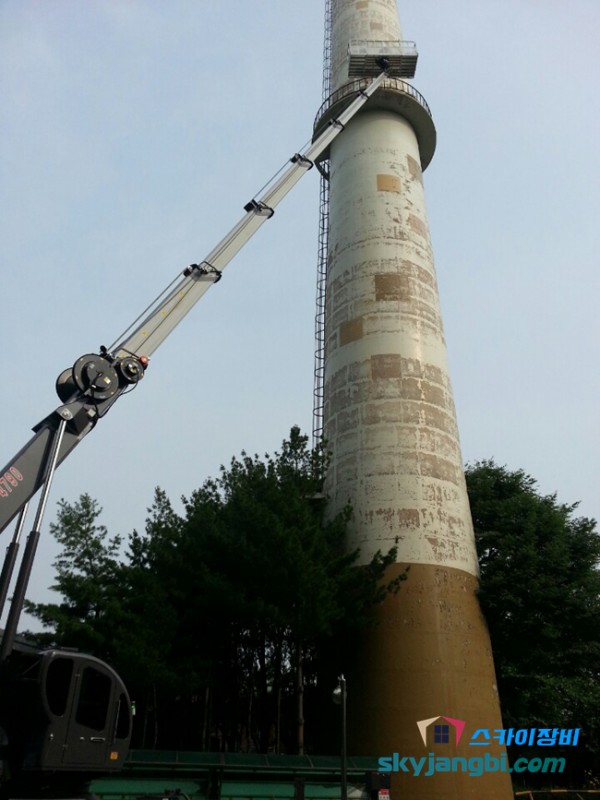 스카이장비차 굴뚝 고소작업 현장 > 작업사진