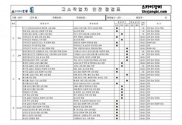 스카이장비 고소 작업차 안전 점검표 > 스카이자료